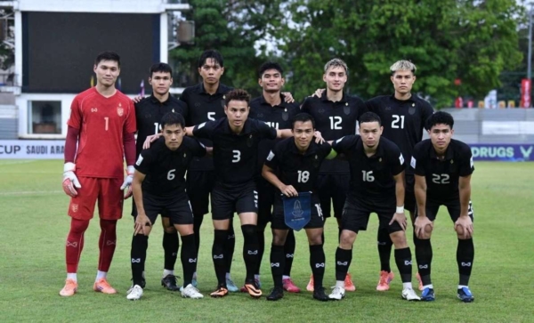 นักเตะทีมชาติไทยถ่ายภาพหมู่ก่อนการแข่งขันฟุตบอลอาเซียนคัพ 2026